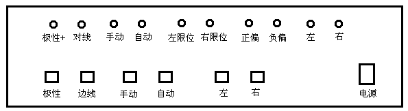 1、指 示 燈: 前面板上部為指示燈,指示當前的工作方式。 2、“極性”按鍵: 設定電機在自動控制狀態的旋轉方向。 3、“邊線”按鍵: 設定系統在“對邊”或“對線”方式下工作。 4、“手動”按鍵: 設定系統在手動控制狀態下工作。 5、“自動”按鍵: 設定系統在自動控制狀態下工作。 6、“左” 按鍵: 在手動狀態下控制電機的左轉。自動狀態下該鍵無效。 7、“右” 按鍵: 在手動狀態下控制電機的右動。自動狀態下該鍵無效。