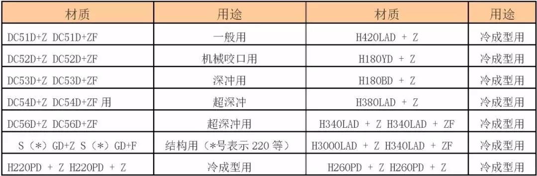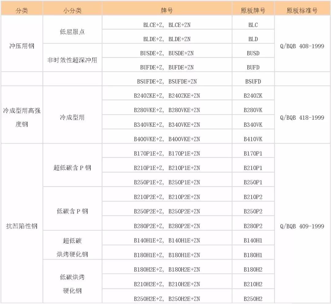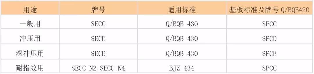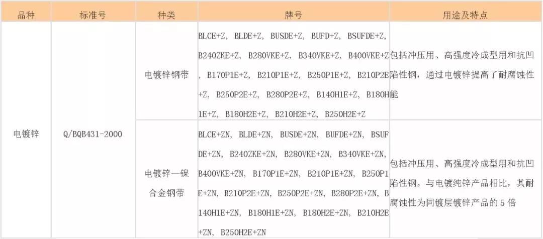 2、電鍍鋅鋼板相關(guān)標準(以某鋼企為例) 【用途和牌號】