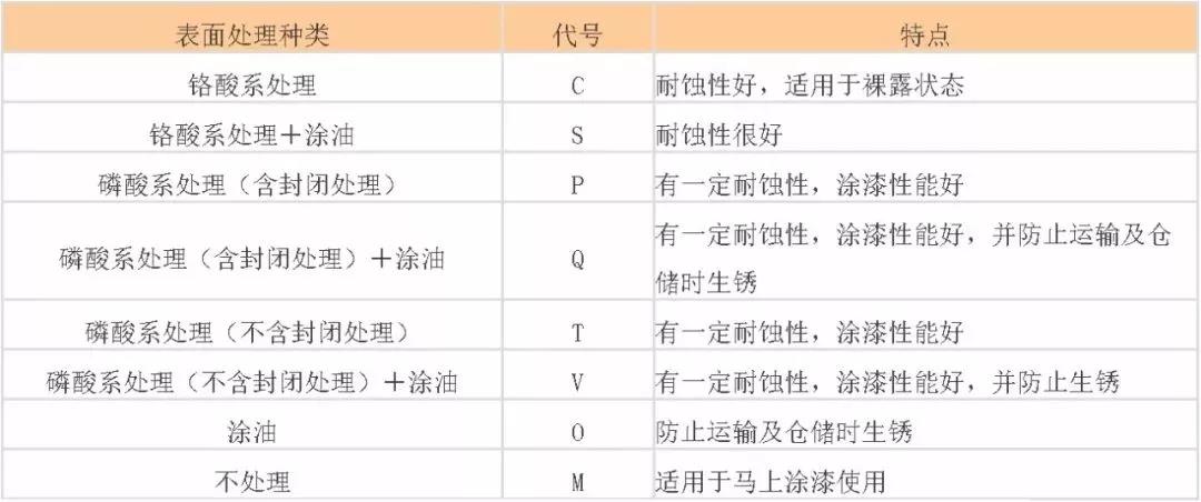 【表面處理種類及特點】