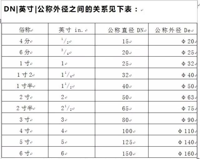 當(dāng)設(shè)計均用公稱直徑DN表示管徑時,應(yīng)有公稱直徑DN與相應(yīng)產(chǎn)品規(guī)格對照表。